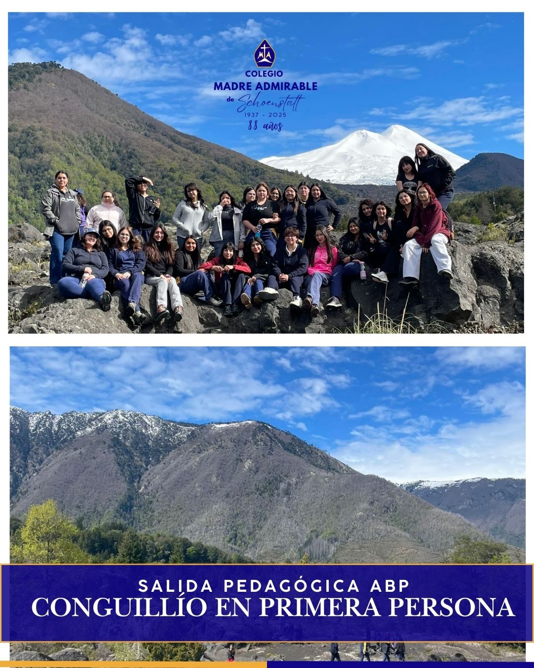 El pasado martes 23 de septiembre, nuestras estudiantes de III° y IV° medio participaron de una enriquecedora experiencia educativa en la salida pedagógica al Parque Nacional Conguillío, en el marco de un ABP (Aprendizaje Basado en Proyectos) que integra todas las asignaturas del plan diferenciado y de Inglés.