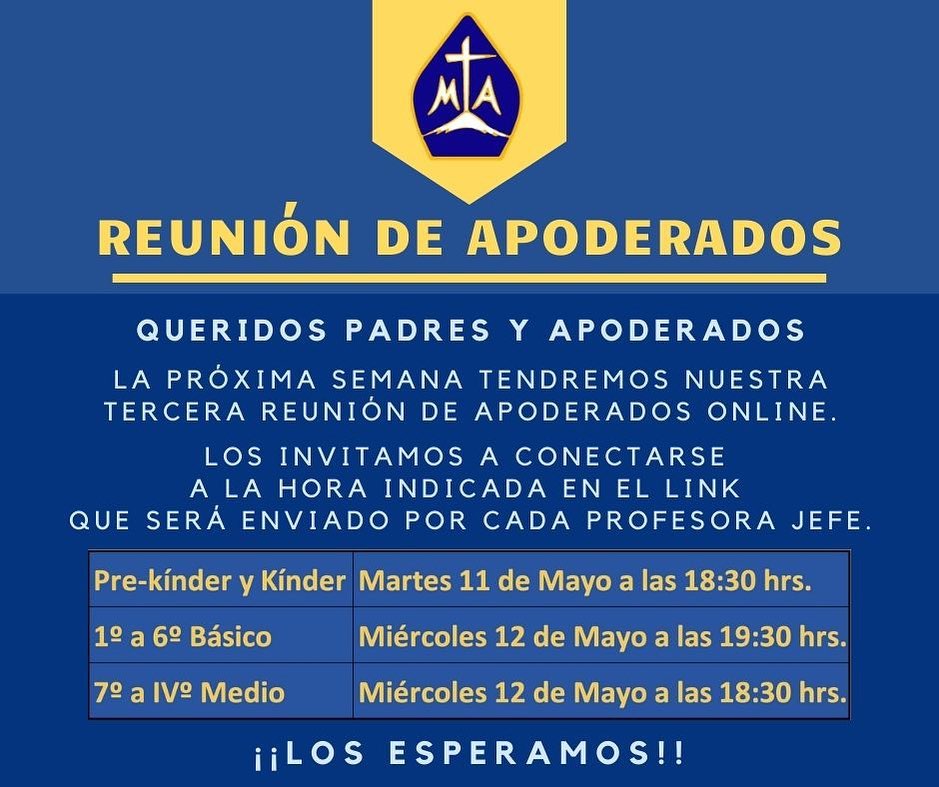 mayo 7, 2021 Madre Admirable de Schoenstatt Reunión de Padres y Apoderados Compártelo en tus redes Share this...FacebookPinterestTwitterLinkedin Un nuevo encuentro.